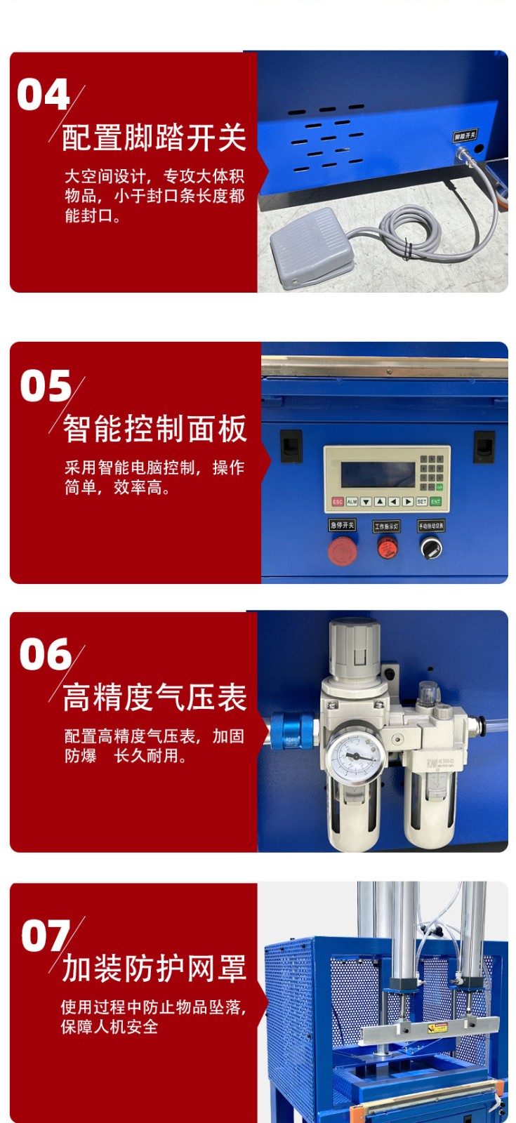 - 進(jìn)行封口測(cè)試:在正式使用之前,可以進(jìn)行幾次試封口操作,使用與實(shí)際包裝相同的材料進(jìn)行測(cè)試。觀察封口效果,如封口是否牢固、平整,有無(wú)燒焦或未封合的現(xiàn)象。如果封口效果不理想,可以根據(jù)實(shí)際情況再次微調(diào)溫度設(shè)定值,直到獲得滿意的封口效果為止。