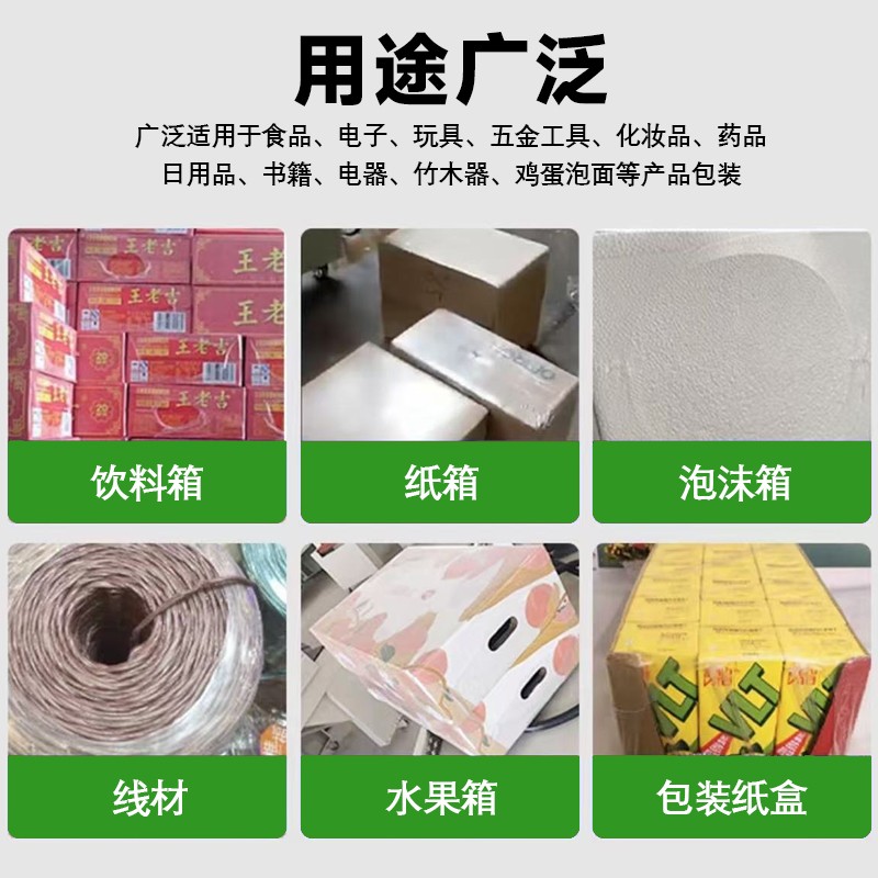 可處理尺寸范圍廣(長度 50-600mm、寬度 30-400mm、高度 20-300mm),支持方形、圓形、異形產品及多排組合包裝(如 2-6 瓶飲料組合),僅需 2-3 分鐘即可完成規格切換,無需頻繁更換設備。