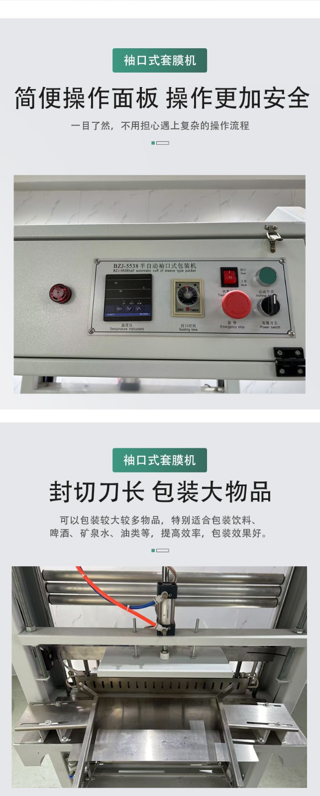 按自動化程度分類:可分為半自動袖口式熱收縮包裝機和全自動袖口式熱收縮包裝機。半自動需人工輔助完成產品放置或封口操作,適用于中小規模生產;全自動則自動化完成輸送、封切、收縮等全流程,適合大規模生產。