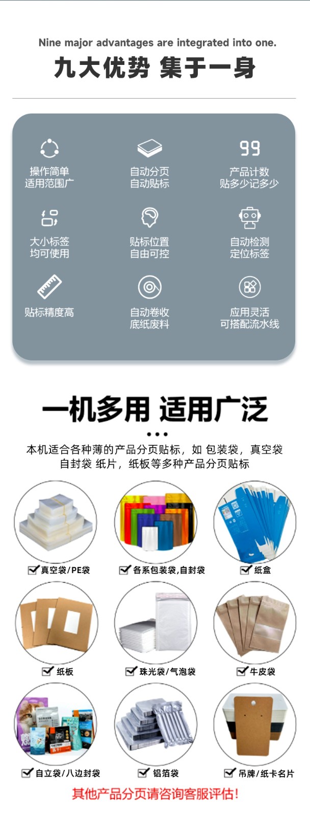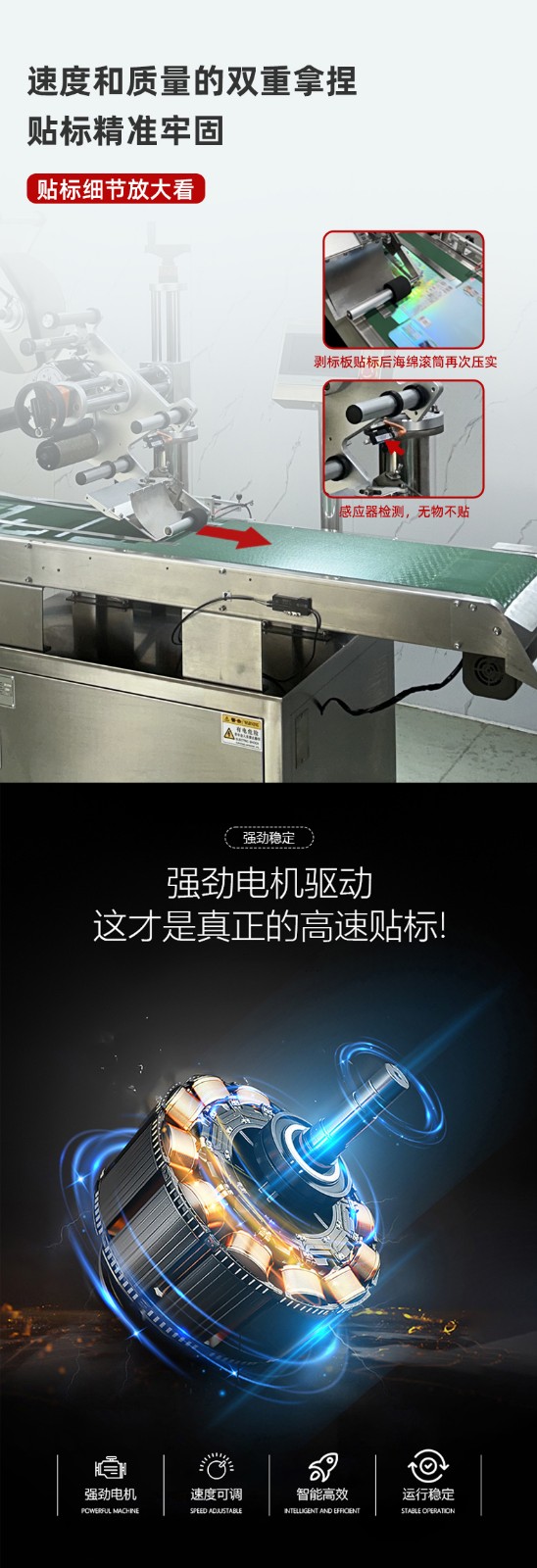 - 調整電機轉速:全自動分頁貼標機一般采用電機驅動標簽輸送和產(chǎn)品輸送。在控制系統(tǒng)中,找到電機轉速調節(jié)參數(shù),通過增加或減少電機的轉速來改變貼標速度。例如,將電機轉速從 500 轉 / 分鐘調整到 800 轉 / 分鐘,貼標速度會相應提高。不同品牌和型號的貼標機,其電機轉速調節(jié)方式可能不同,有的是通過觸摸屏直接輸入數(shù)值,有的則是通過參數(shù)菜單進行選擇調整。