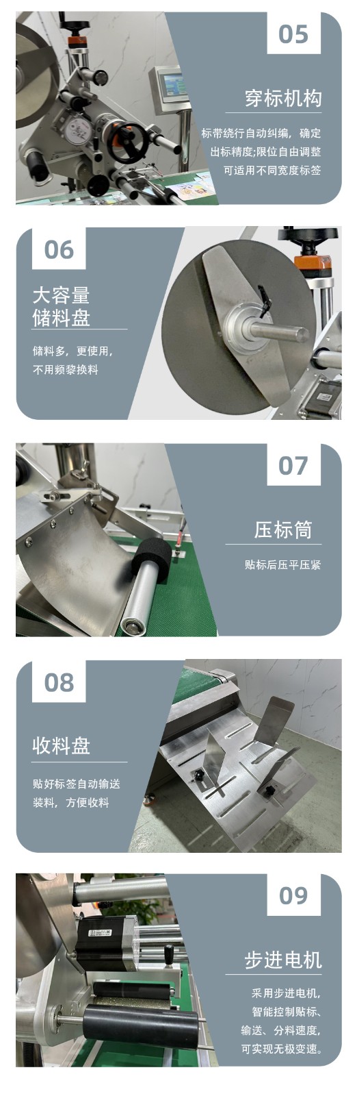 - 調整輸送帶速度:輸送帶的速度直接影響產(chǎn)品的輸送速度,進而影響貼標速度。松開輸送帶張緊裝置,調整輸送帶驅動電機的位置,使輸送帶速度加快或減慢,然后再擰緊張緊裝置。或者有些設備可以通過調整輸送帶傳動鏈條的傳動比來改變輸送帶速度。比如,將傳動鏈條的鏈輪更換為齒數(shù)比更小的鏈輪,輸送帶速度就會提高,貼標速度也會相應加快。