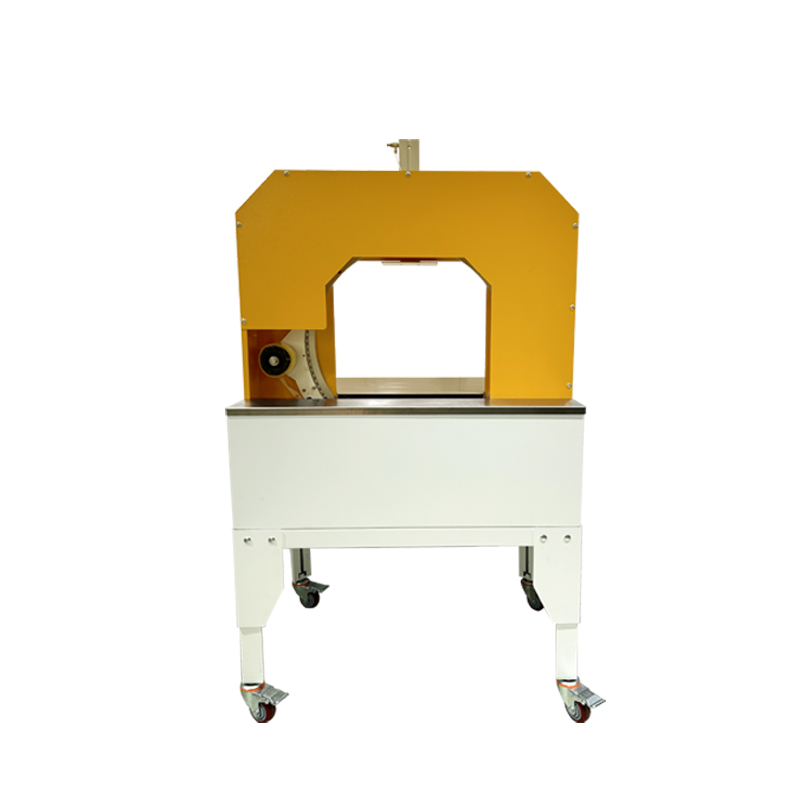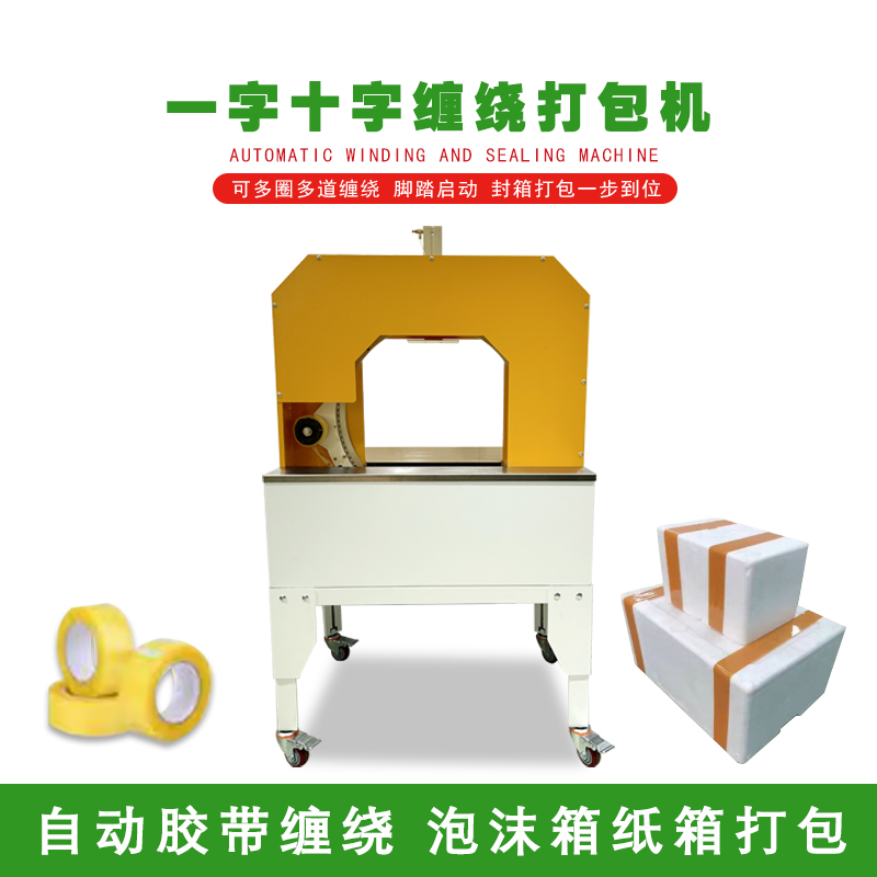 - 半自動膠帶纏繞機:這類機器需要操作人員手動放置產品,并啟動纏繞程序。在纏繞過程中,部分操作(如膠帶的供給和切斷)可能由機器自動完成,但仍需要人工干預一些環節,如更換膠帶卷、調整產品位置等。它適合產品種類較多、形狀和尺寸變化較大的包裝場景,因為操作人員可以根據具體情況靈活調整。