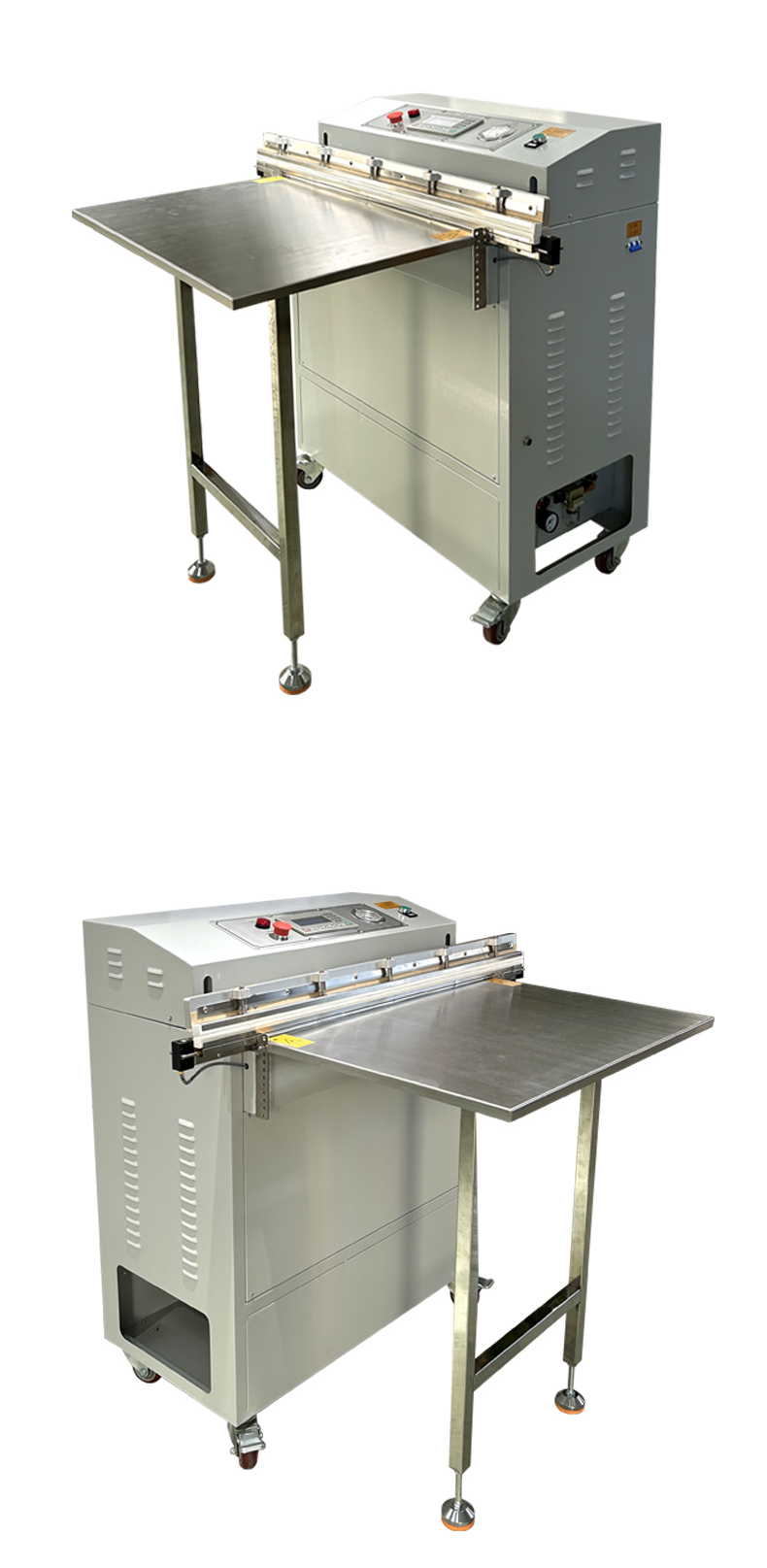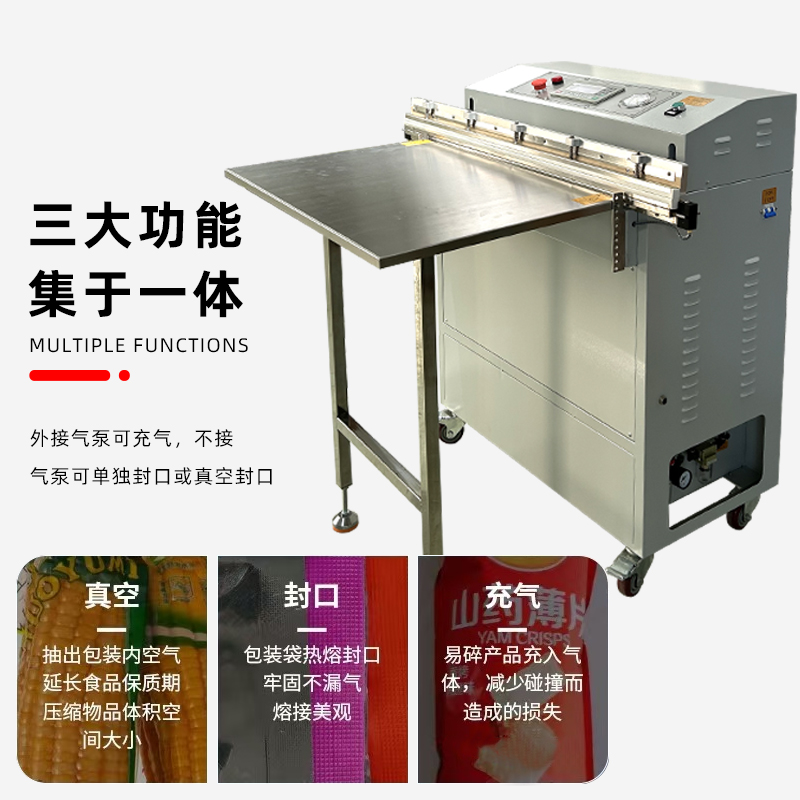 - 氣動外抽真空包裝機的抽氣口在包裝機外部,通過外接的抽氣管道對包裝袋進行抽氣。而內抽式真空包裝機是將包裝袋放入機器內部的真空室進行抽氣。外抽式的優勢在于可以對不同尺寸和形狀的包裝袋進行靈活抽氣,不受真空室大小的限制。例如,對于一些體積較大、形狀不規則的產品包裝,如大型的電子設備、長條形的工業零部件等,外抽式更能發揮其優勢。內抽式則更適合尺寸相對固定、批量較大的產品包裝,因為其內部真空室的尺寸是固定的,對于形狀和大小差異較大的包裝可能不太方便。