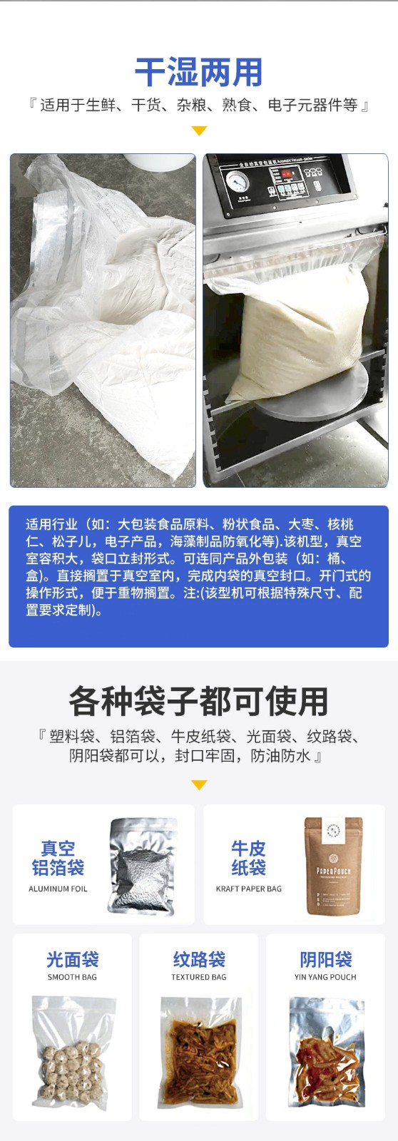 • 智能控制:具備智能控制系統,能根據不同食材的特性調節真空度、封口時間等參數,避免汁液被抽出或包裝過度收縮等問題,確保最佳的保鮮效果和包裝質量47
