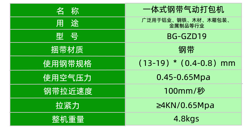 一體式鋼帶氣動打包機BG-GZD19